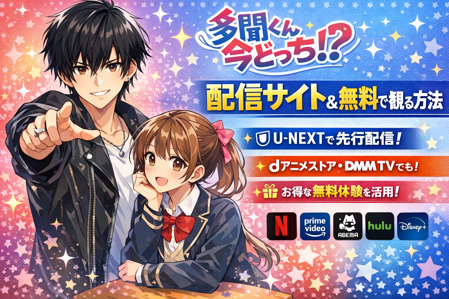 2026年冬アニメとして注目を集めている『多聞くん今どっち!?』は、地上波だけでなく数多くの配信サイトで視聴できます。