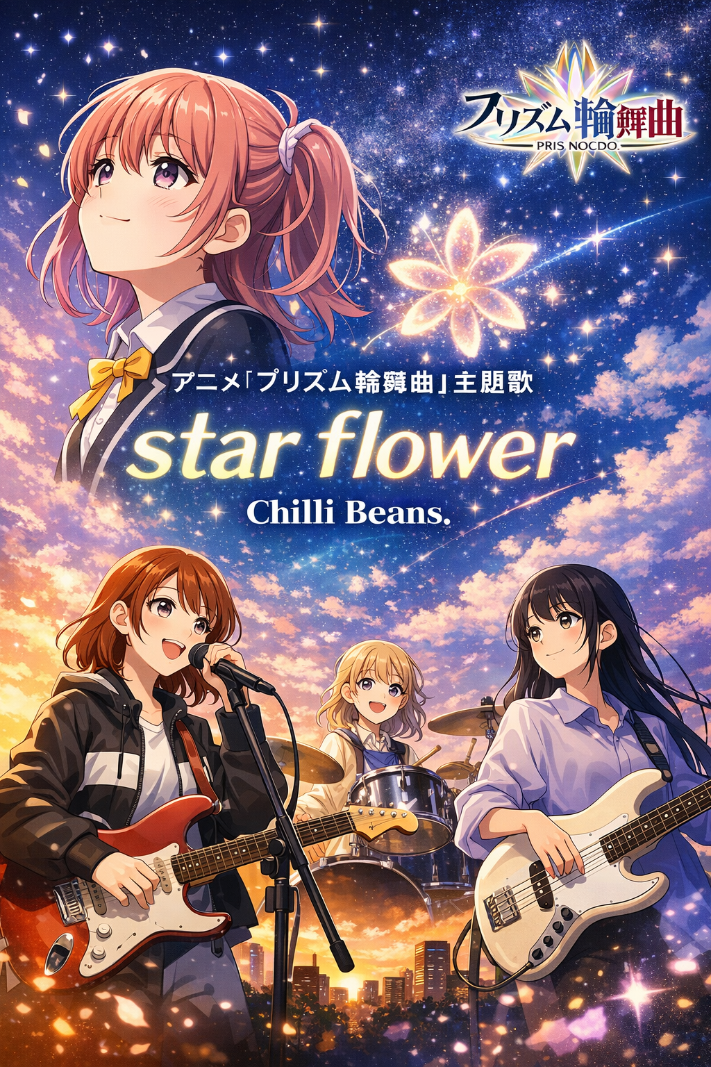 アニメ『プリズム輪舞曲』の主題歌「star flower」は、3ピースバンドChilli Beans.による書き下ろし楽曲です。