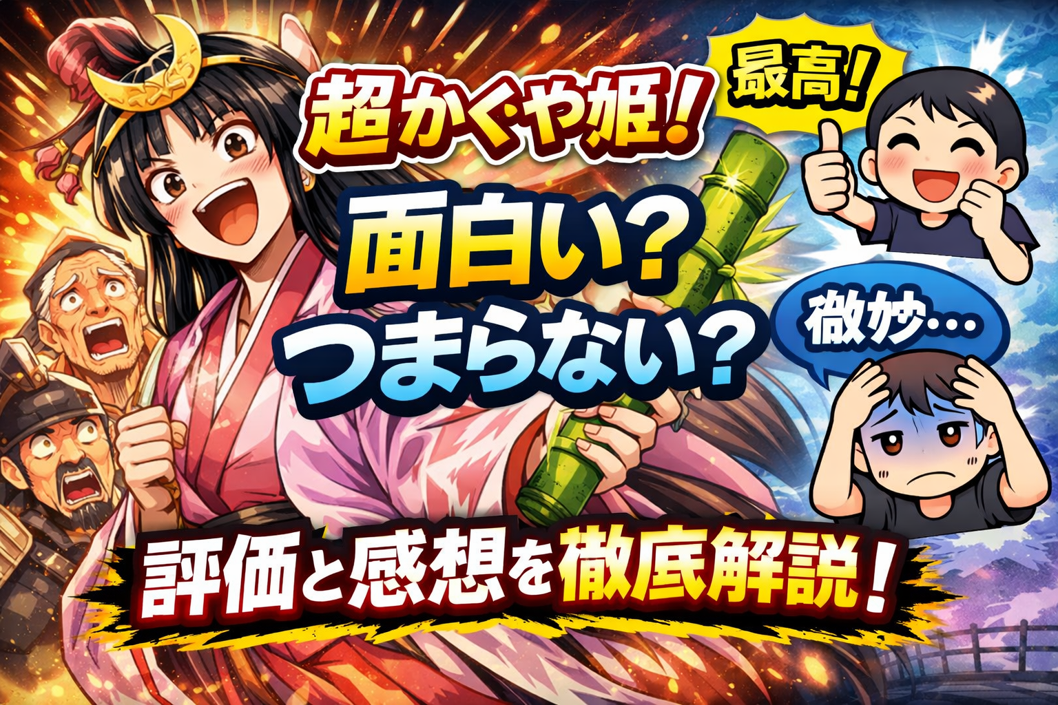 私がレビューサイトやSNS上の感想を確認した限り、超かぐや姫!は平均評価は比較的高めだが、熱量の差が大きい作品だと感じました。